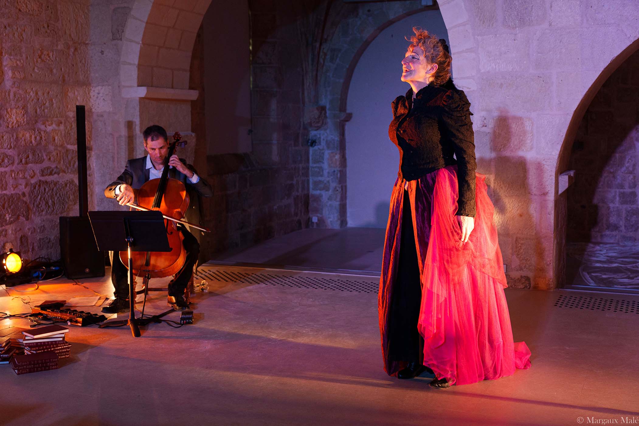 La Lettre d’une Inconnue de Stefan Zweig : l’inconnue c'est une amoureuse, une amoureuse absolue. Elle ne vit que par lui, elle naît avec lui mais elle ne lui parle pas, elle ne se nomme pas, elle reste pour lui « encore et toujours une inconnue ». Lui, c'est un dandy nourri de tourbillons et d'aventures. L'heroïne, la vraie, c'est la lettre, celle qui s’échappe du cerveau fiévreux de l’inconnue et se grave dans l’espace, mots de feu, de sueurs, de cendres. Une lettre qui se dessine dans les notes enfiévrées et déchirantes du violoncelle, peut être le seul lieu où lui et elle se retrouvent. Une peinture de l’être intime telle que la plume subtile et enflammée de Zweig les ciselait, une danse de l’âme, une musique sensuelle et brûlante.